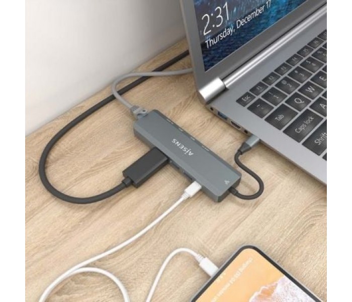 - AISENS - USB-C DOCK 5 EN 1, USB-C A 1xHDMI, 1xRJ45, 2xUSB, 1xPD, GRIS, 15CM