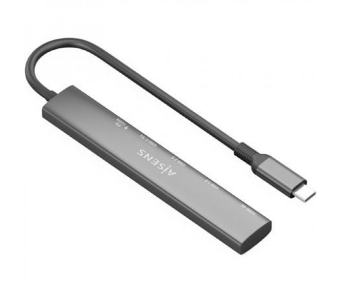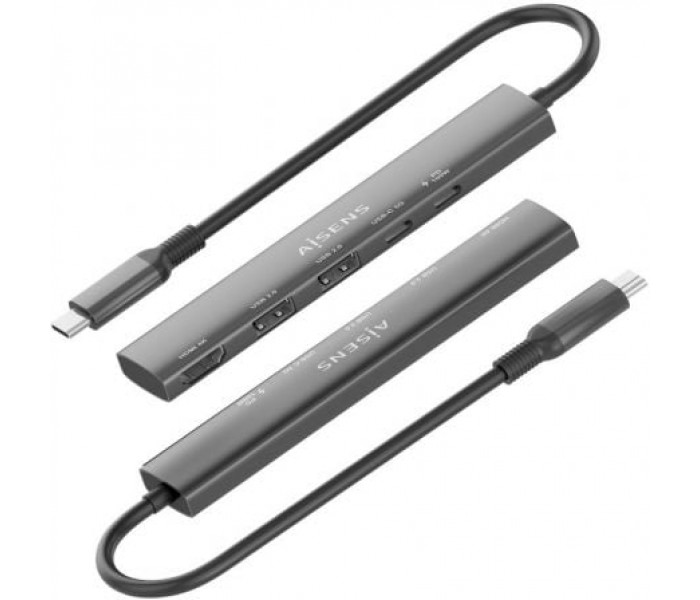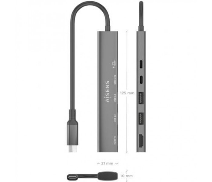 AISENS - USB-C DOCK 5 EN 1, USB-C A 1xHDMI 2xUSB-A 1xUSB-C 1xUSB-C PD, GRIS, 15CM