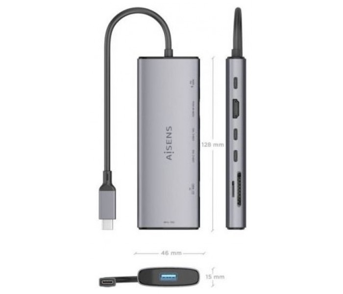- Conversor USB-C a 1xHDMI, 1xUSB-A 10G, 2xUSB-C 10G, 1xLector de tarjeta SD, 1xLector de tarjeta MICRO SD, 1xUSB-C PD 100W.