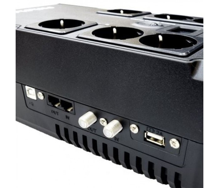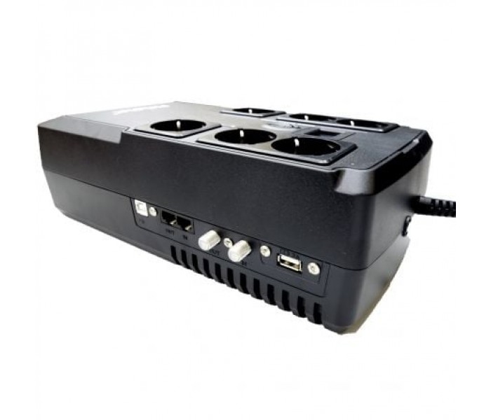 SAI Phasak de 800 VA con tecnologÍa digital interactiva. Fueron sometidos a rigurosos ensayos y controles de calidad, superando estos ensayos de manera satisfactoria. Tienen control por microprocesador para un rendimiento y apagado óptimos del sistema. El Software de Gestión, que puede descargar de Internet e instalar según sus necesidades, hace que el SAI sea completamente integrable con su sistema. Con estos UPS de línea interactiva, los voltajes que son demasiado bajos o demasiado altos se corrigen automáticamente sin usar la batería. Esta función garantiza la disponibilidad del máximo tiempo de respaldo en caso de una interferencia en la tensión eléctrica, ofreciendo una protección confiable y duradera. Con monitorización vía puerto USB y protección de un puerto RJ-45 y cable coaxial. También tiene un puerto USB para cargar dispositivos.