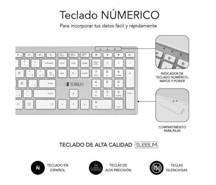 Teclado Inalámbrico por Bluetooth Subblim 2PUE200 Pure Extended/ Plata