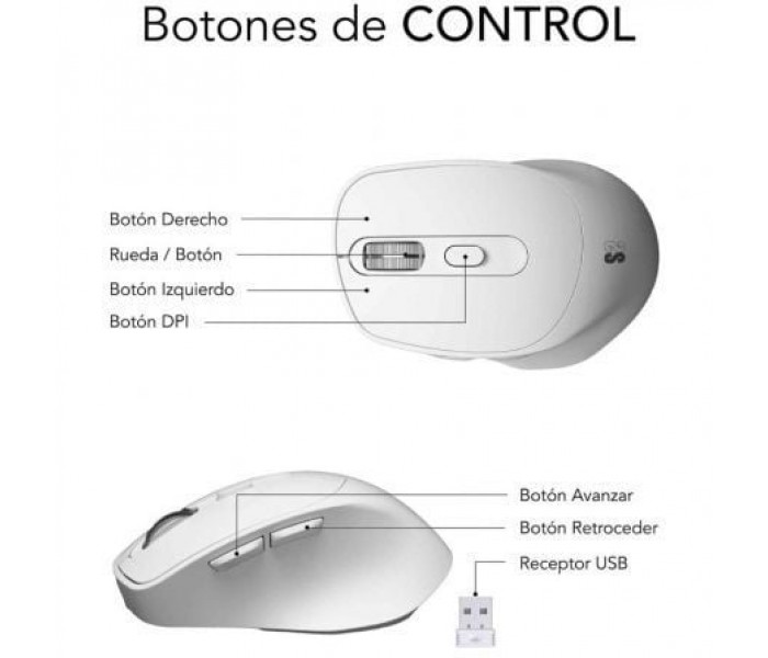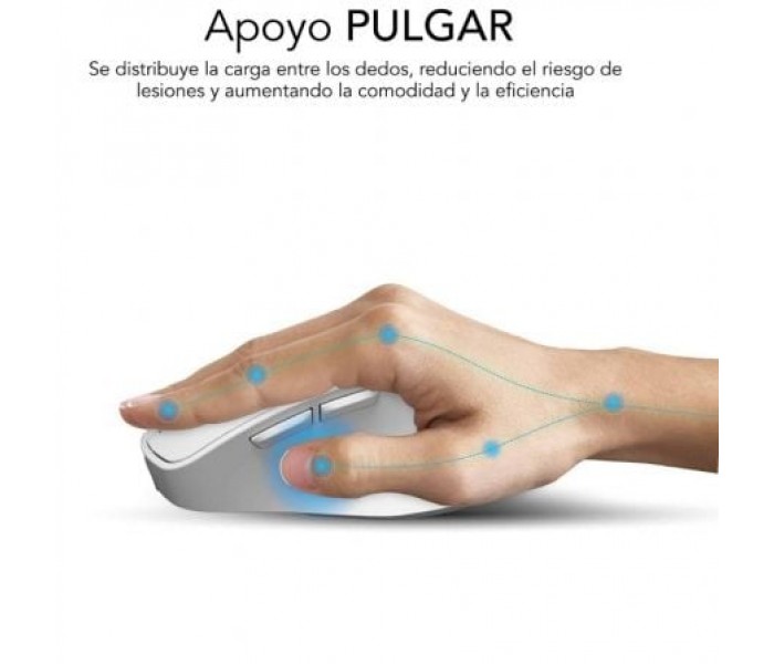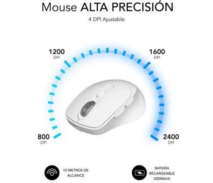 Ratón Ergonómico Inalámbrico por Bluetooth/ 2.4GHz Subblim Comfort Ergo Dual Battery/ Batería recargable/ Hasta 2400 DPI/ Blanco