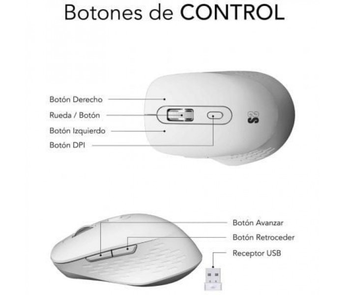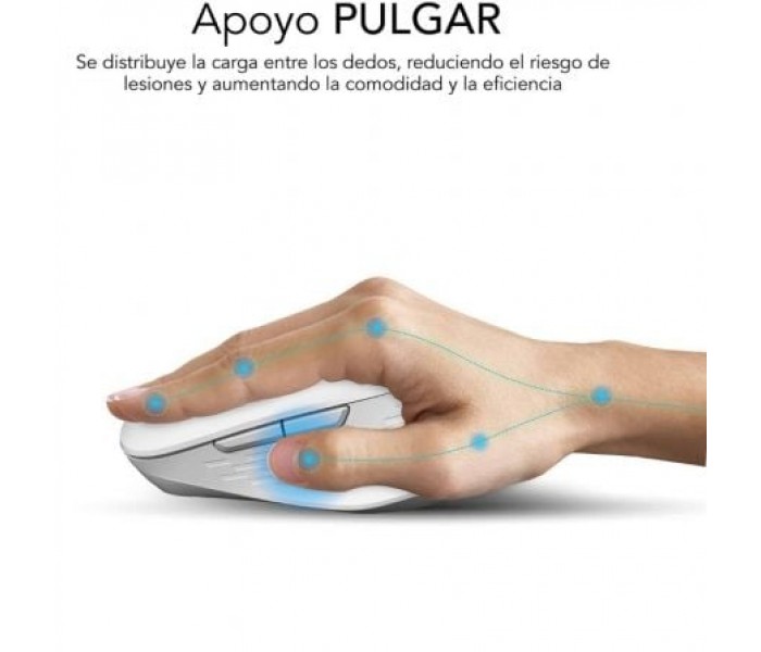 Ratón Ergonómico Inalámbrico por Bluetooth/ 2.4GHz Subblim Curve Ergo Dual Battery/ Batería recargable/ Hasta 1600 DPI/ Blanco