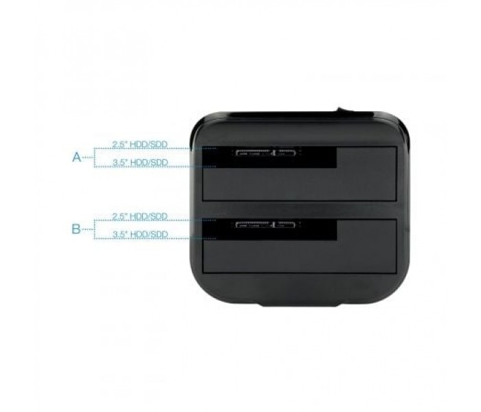 TOOQ DOCK STATION DOBLE SATA 2.5/3.5 A USB 3.0, CLONE, OTB, NEGRO