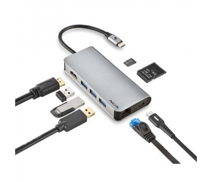 Docking USB Tipo-C NGS WonderDock8/ 3xUSB/ 1xUSB Tipo-C DP/ 1xHDMI 4K/ 1xRJ45/ 1xLector Tarjetas SD