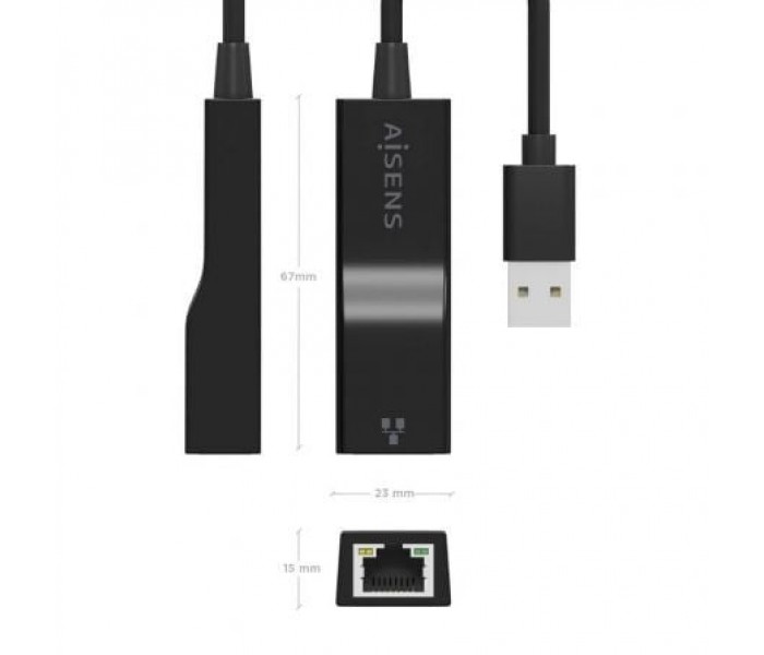 - AISENS - CONVERSOR USB 3.0 A ETHERNET GIGABIT 10/100/1000 MBPS, NEGRO, 15CM