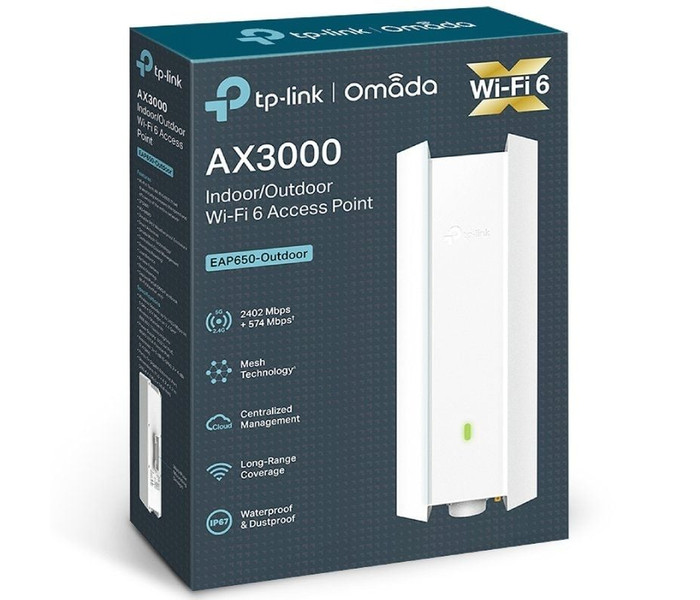 Punto de Acceso Inalámbrico TP-Link Omada EAP650-OUTDOOR/ WiFi 6/ PoE+/ 3000Mbps/ 2.4GHz 5GHz/ Antenas de 5dBi/ WiFi 802.11 ax/ac/n/g/b/a