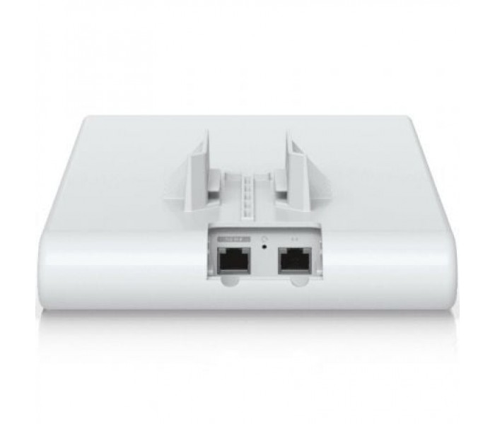 Especificaciones. . Dimensions 343.2 x 181.2 x 60.2 mm (13.5 x 7.1 x 2.4""). Weight 819 g (1.8 lb). Enclosure material UV-stabilized polycarbonate. Mount material Aluminum alloy, steel. Pole mount diameter 1~2.5"" on pipe outer diameter. Weatherproofing IPX6. . Hardware. Networking interface (2) GbE RJ45 ports. Management interface Ethernet. WiFi. Power method PoE. Power supply UniFi PoE switch. 48V, 0.5A PoE adapter (Included). Supported voltage range 42.5—57V DC. Max. power consumption 9W. Max. TX power. 2.4 GHz. 5 GHz. 6 GHz . 22 dBm. 27 dBm. -. MIMO. 2.4 GHz. 5 GHz. 6 GHz . 2 x 2 (DL/UL MU MIMO). 2 x 2 (DL/UL MU-MIMO). -. Max. data rate. 2.4 GHz. 5 GHz. 6 GHz . 573.5 Mbps (BW40). 2.4 Gbps (BW160). -. Antenna gain. 2.4 GHz. 5 GHz. 6 GHz . 8 dBi. 8 dBi. -. LEDs White/blue. Button Factory reset. Mounting Wall, pole (Included). Ambient operating temperature -30 to 60º C (-22 to 140º F). Ambient operating humidity 5 to 95% noncondensing. Certifications CE, FCC, IC. . Software. WiFi standards 802.11a/b/g/n/ac/ax (WiFi 6). Wireless security WPA-PSK, WPA-Enterprise (WPA/WPA2/WPA3). BSSID 8 per radio. VLAN 802.1Q. Advanced QoS Per-user rate limiting. Guest traffic isolation Supported. Concurrent clients 350+. Supported Data Rates. 802.11a 6, 9, 12, 18, 24, 36, 48, 54 Mbps. 802.11b 1, 2, 5.5, 11 Mbps. 802.11g 6, 9, 12, 18, 24, 36, 48, 54 Mbps. 802.11n 6.5 Mbps to 300 Mbps (MCS0 - MCS15 , HT 20/40). 802.11ac 6.5 Mbps to 1.7 Gbps (MCS0 - MCS9 NSS1/2, VHT 20/40/80/160). 802.11ax (WiFi 6) 7.3 Mbps to 2.4 Gbps (MCS0 - MCS11 NSS1/2, HE 20/40/80/160)