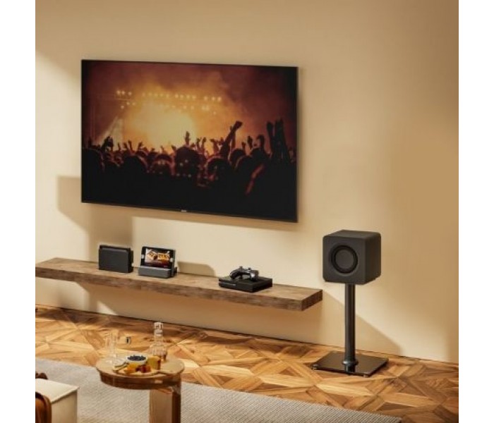 Fabricado con vidrio y acero de alta resistencia y pintado con pintura electrostática para un acabado perfecto. Optimiza el rendimiento de tus altavoces con este soporte de suelo versátil, diseñado para combinar estabilidad, durabilidad y estilo. Fabricado en acero de alta resistencia y vidrio, con un acabado en pintura electrostática, garantiza un soporte firme y un diseño moderno que se integra en cualquier espacio. Ideal para el salón, estudios o home cinema, este soporte mantiene tus altavoces a la altura óptima, asegurando un sonido limpio, claro y preciso.