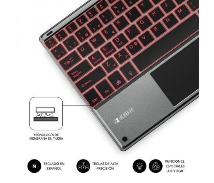 Teclado Compacto Inalámbrico por Bluetooth Subblim Touchpad Smart Blacklit/ Gris