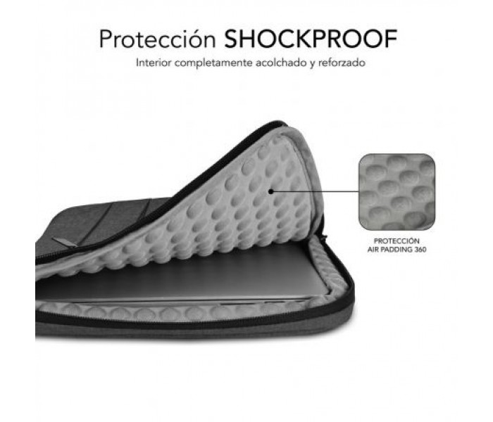 La Funda Air Padding 360 de SUBBLIM es una excelente opción para aquellos que buscan protección total para su ordenador portátil. Cuenta con un departamento exclusivo que incorpora un revestimiento de burbujas acolchadas llamado Air Padding, que brinda una protección excepcional contra golpes y caídas accidentales, incluso cubriendo los bordes y extremos del dispositivo. Además, la funda cuenta con múltiples bolsillos frontales que proporcionan un amplio espacio para almacenar los artículos de uso diario, como el cargador, cables, ratón y bolígrafos, lo que resulta muy práctico tanto para el trabajo como para los viajes. . La Funda Air Padding 360 está hecha de materiales resistentes que le permiten repeler el agua y otros elementos, así como presentar resistencia ante los desgarros, lo que la hace muy duradera. . La funda también es muy cómoda de transportar gracias a su resistente asa que permite llevarla en la mano, o se puede meter dentro de una mochila para una mayor movilidad. En definitiva, la Funda Air Padding 360 de SUBBLIM es una excelente opción para aquellos que buscan protección total y comodidad al transportar su ordenador portátil en su día a día o en sus viajes de negocios.. . Características principales:. . Air Padding. La tecnología Air Padding de SUBBLIM proporciona una protección excepcional al crear una capa de burbujas acolchadas que absorben impactos y protegen tu dispositivo de forma efectiva cubriendo incluso los bordes, los extremos y los laterales de tu ordenador.. . Múltiples Bolsillos. Está diseñada para ofrecer un espacio de almacenamiento para llevar los artículos de uso diario. Los múltiples bolsillos frontales de la funda proporcionan una organización efectiva para los elementos esenciales de la vida diaria, como el cargador, cables, ratón o bolígrafos. Brinda un fácil acceso a los elementos, lo que significa que no tendrás que buscar dentro de la funda para encontrar lo que necesitas. Además, los bolsillos son lo suficientemente grandes para contener varios elementos a la vez, lo que los hace ideales para aquellos que necesitan llevar muchos artículos consigo.. . Transporte Seguro. La Funda Air Padding 360 es la opción ideal para aquellos que buscan una protección total y segura para su ordenador portátil y accesorios, gracias a la combinación de materiales de alta calidad, el sistema Air Padding y la fuerte asa retráctil que ofrece.. . Especificaciones:. . Elegante y funcional funda para ordenadores portátiles de hasta 14". Sistema de protección de 360º Air Padding mediante burbujas acolchadas cubriendo los bordes, extremos y laterales de tu ordenador. Compatible con MacBook Pro M1 Pro/Max A2442 2021, 13,5"" Microsoft Surface Book, Surface Laptop, ASUS ZenBook 14, HUAWEI MateBook D14. Fabricado en resistente poliéster Oxford. Repele líquidos. Doble cremallera en el bolsillo principal. Bolsillos exteriores para documentos, bolígrafos, accesorios, etc. Resistente asa superior retráctil para un transporte seguro. Medidas Interiores: 340x245x30 mm