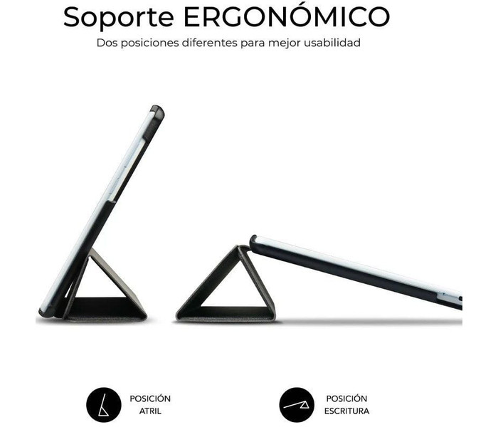 Sistema con imanes que activa o suspende la pantalla automáticamente. Función de soporte con doble ángulo para: Ver vídeos Escribir o tomar notas Ideal para estudiar, trabajar o disfrutar series sin usar las manos.
