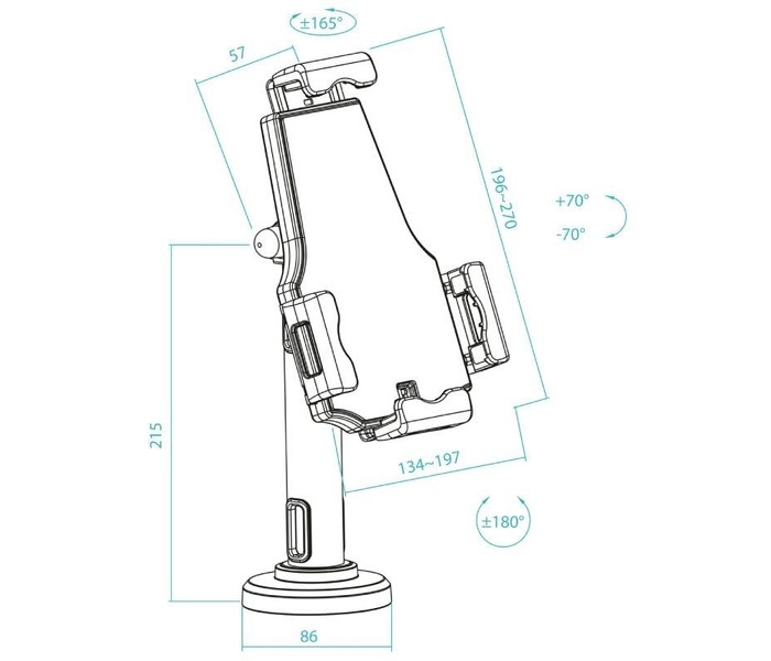 • Alto del soporte de tablet: mín 196 – máx 270 mm