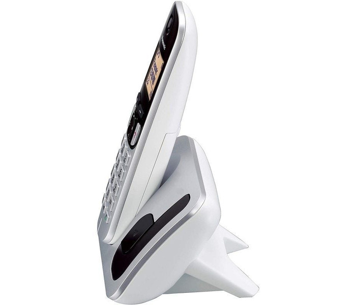 Pantalla grande y fácil de leer Bloqueo de llamadas de hasta 30 números no deseados Modo nocturno Teclado y pantalla con luz de fondo Frecuencia: 1,9 GHz Rango de frecuencia: 1,91 GHz - 1,92 GHz Cantidad de canales: 60 canales Sistema: DECT Cantidad de líneas telefónicas: 1 Idioma del LCD: Español Ahorro de energía: Radio de baja potencia o modo Eco inteligente: Sí Comodidad Contestar con cualquier tecla: Sí Modo nocturno: Sí Reloj: Sí Alarma (despertador/alarma de nota): Sí Identificador de llamadas/Directorio Identificador de llamadas: Sí Identificador de llamadas: * Requiere suscripción a un servicio de identificador de llamadas ofrecido por su proveedor o compañía telefónica. Memoria de identificador de llamadas: 50 elementos Memoria de identificador de llamadas: * Requiere suscripción a un servicio de identificador de llamadas ofrecido por su proveedor o compañía telefónica. Identificador de las llamadas en espera: Sí Identificador de las llamadas en espera: * Requiere suscripción a servicios de identificador de llamadas y llamada en espera con identificador de llamadas ofrecidos por su proveedor o compañía telefónica. Timbre por categoría/Identificador de timbre: Sí Timbre por categoría/Identificador de timbre: * Requiere suscripción a un servicio de identificador de llamadas ofrecido por su proveedor o compañía telefónica. Timbre por categoría/Identificador de timbre: * Requiere registro en la función de directorio. Bloqueo de llamadas: Sí (30 números) Bloqueo de llamadas: * Requiere suscripción a un servicio de identificador de llamadas ofrecido por su proveedor o compañía telefónica. Bloqueo de llamadas: * Requiere registro del número en la lista de bloqueo de llamadas. Memoria de directorio en la unidad de base (nombre/número): 50 elementos Memoria de directorio en la unidad de base (nombre/número): (16 caracteres/24 dígitos) Auricular LCD: 1,6 pulgadas LCD: FullDot monocromática LCD: 103 x 65 píxeles Color de luz de fondo de la LCD: Ámbar Teclado iluminado: Ámbar Altavoz (niveles de volumen): Sí (6 niveles) Patrón de timbre (tono + melodía): 15 (5 + 10) Melodía de timbre polifónica: 32 acordes Niveles de volumen del timbre: 6 + Desactivado Niveles de volumen del auricular: 4,0 Memoria de rediscado: 5 (nombre y número) Memoria de rediscado: * Requiere registro en el directorio para mostrar el nombre. Dígitos del número de rediscado: 48,0 En espera: Sí Silencio: Sí Flash: Sí Otros Batería recargable: Ni-MH (AAA x 2) Tiempo de conversación: Hasta 10 horas Tiempo en espera: Hasta 144 horas Tiempo de carga: Aprox. 7 horas