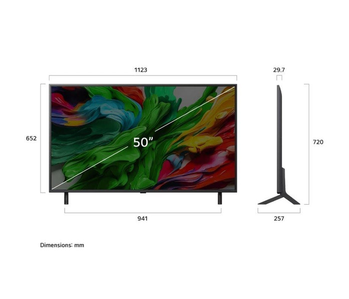 - Dimensiones TV Sin peana (AnxAlxPr mm): 1123 x 652 x 29,7