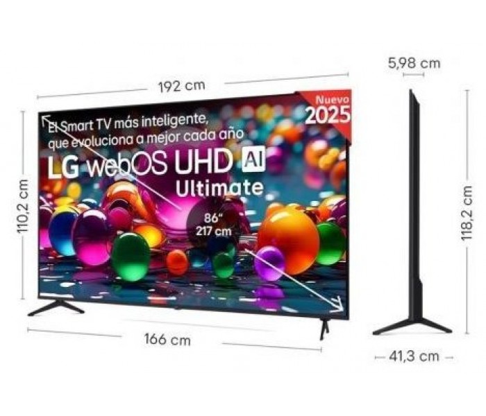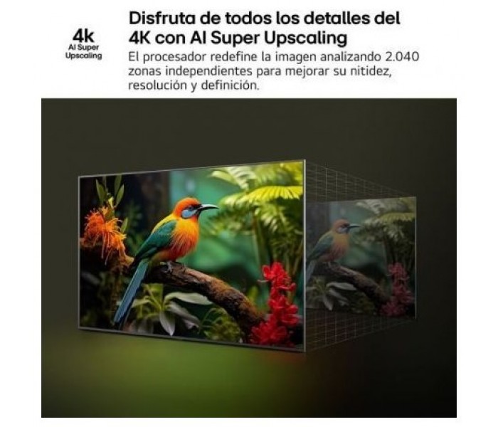 • Smart TV webOS 25 que evoluciona a mejor cada año renovándose en tu TV e incorporando las nuevas funciones de la IA y que está preparado para próximos apagones TDT. Más inteligente para una personalización y un control del hogar avanzados: reconocimiento de voz, recomendación de contenidos, configuración de imagen y sonido, asistente virtual y mando Magic Remote con puntero inalámbrico (no incluido, se vende por separado en esta web.)
