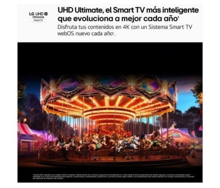 • Funciones Smart: Google Cast, Apple AirPlay, Apple Home, LG ThinQ, AI Chatbot, LG Channels, MultiPantalla