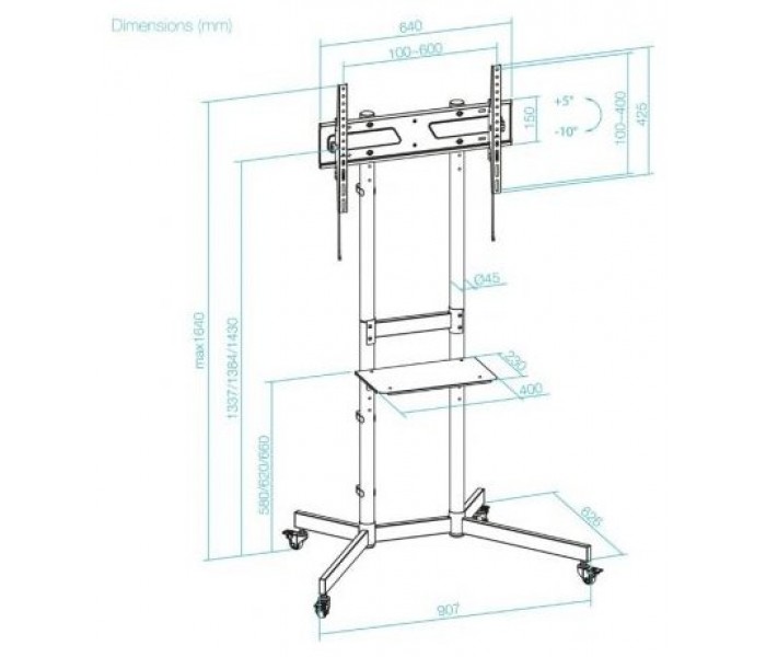 Soporte de Suelo Inclinable con Ruedas TooQ KEFRÉN FS1150M-B para TV de 37-70"/ hasta 70kg