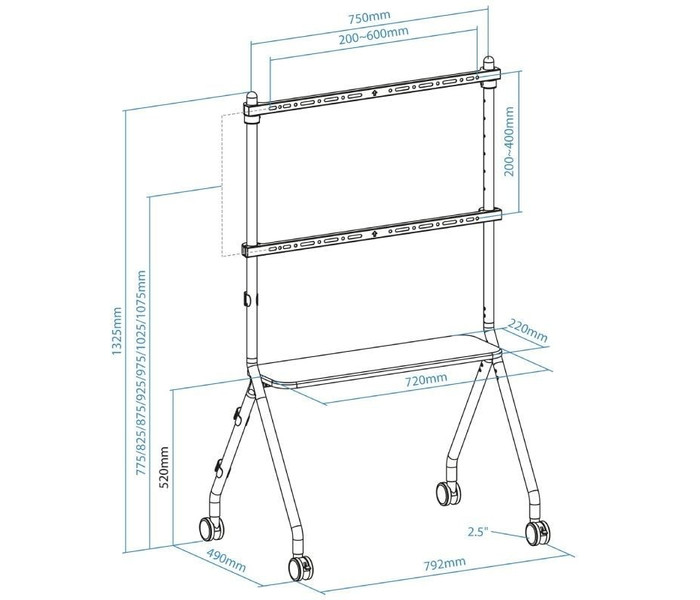 Rango de ajuste de altura del soporte: 775/825/875/925/975/1025/1075 mm
