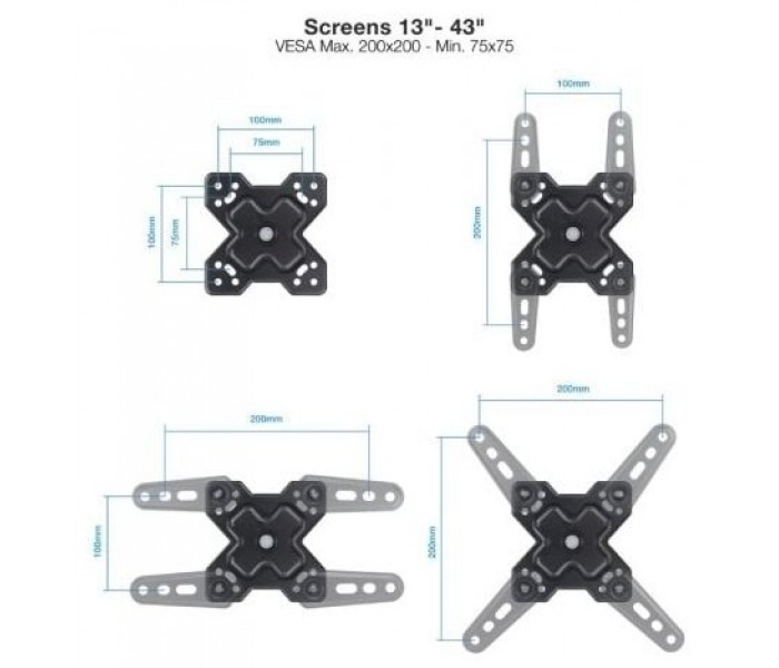 SOPORTE PARED PANTALLAS 13-43" GIRA/INCLI NEGRO TOOQ