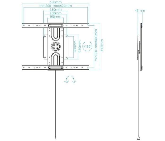 • Compatible con VESA: 200x200, 300x200,400x200, 300x300, 400x300, 350x350, 400x400, 400x600, 600x400