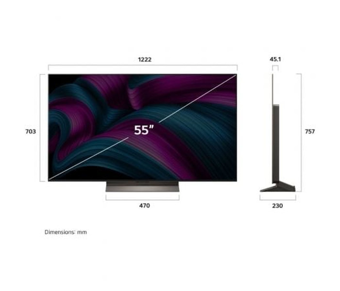 LG OLED evo AI OLED55C56LB. Diagonal de la pantalla: 139,7 cm (55"), Resolución de la pantalla: 3840 x 2160 Pixeles, Tipo HD: 4K Ultra HD, Tecnología de visualización: OLED evo, Forma de la pantalla: Plana. Smart TV. Tecnología de interpolación de movimiento: Movimiento OLED, Tiempo de respuesta: 0,1 ms, Relación de aspecto nativa: 16:9. Formato de señal digital: DVB-S, DVB-S2, DVB-T, DVB-T2. Wifi, Ethernet. Color del producto: Negro