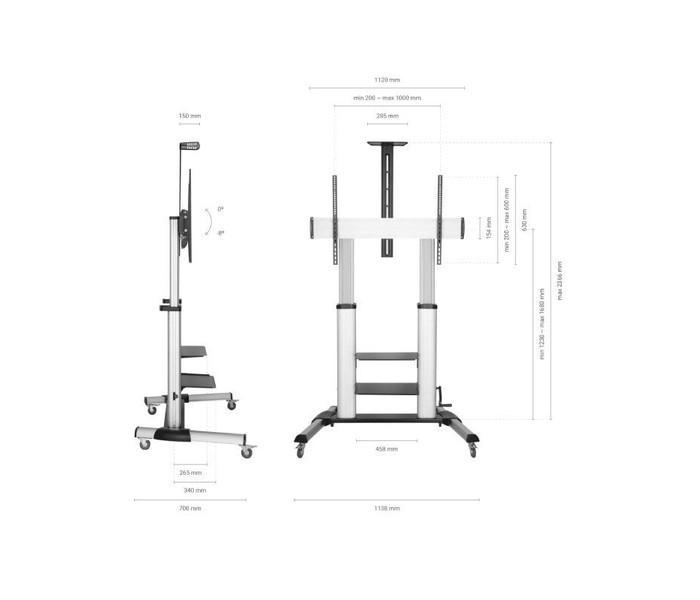 • Rango de ajuste para la altura del soporte TV: ajustable entre 1230 y 1680mm