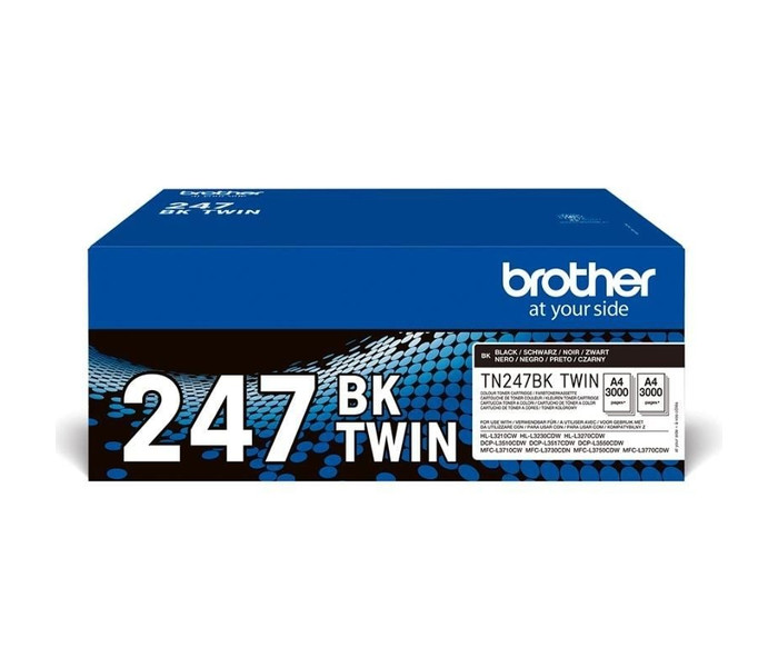 Diseñado específicamente para tu impresora, el pack de tóner original Brother TN247BKTWIN incluye 2 cartuchos de tóner negro, cada cartucho con una duración de hasta 3.000 páginas.