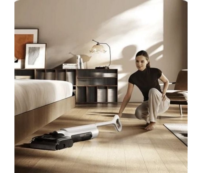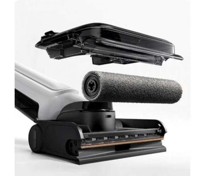 Con una combinación de aspirado, fregado y limpieza del cepillo de rodillo a la vez, cuenta con un sistema de agua limpia en tiempo real para eliminar el pelo, las partículas y las manchas difíciles de forma simultánea, lo que acaba con las molestias de la rutina tradicional de aspirado antes de fregar.